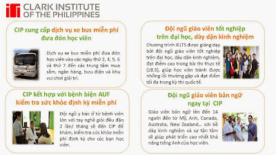 Trường Anh ngữ CIP mang đến cho tất cả các học viên “WOW CIP Experience” được xây dựng bởi 5 yếu tố: đội ngũ giáo viên nhiều kinh nghiệm giảng dạy, cơ sở vật chất tốt, các hoạt động hấp dẫn và thú vị, thức ăn phù hợp với học viên và môi trường học tập quốc tế, đa quốc tịch. Đây là các yếu tố làm cho CIP trở thành lựa chọn tốt nhất và phù hợp nhất cho việc nâng cao khả năng tiếng Anh của bạn.